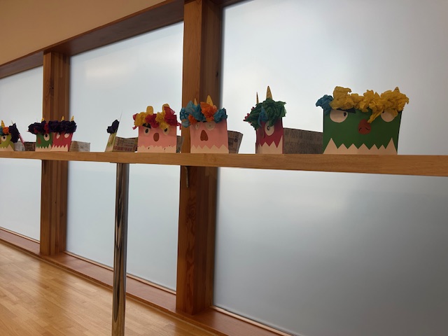 もちろん自分で作った鬼のお面を付けてみんなで楽しく豆まきをしました(#^^#)