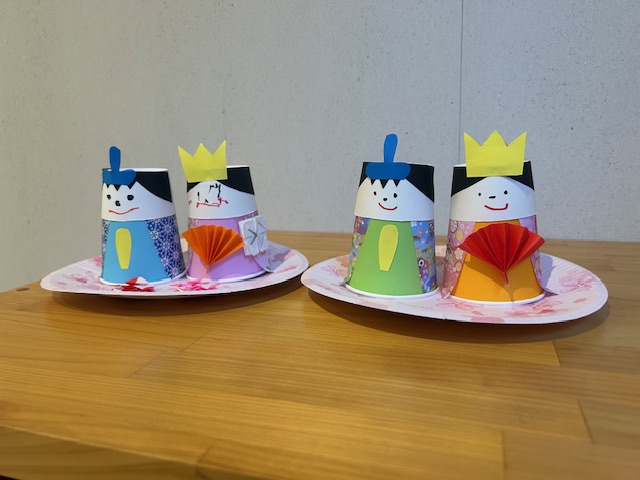 三月をいうことで工作はひな人形を作りです(*^。^*)