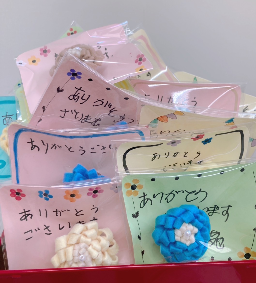 最後に1年間のお礼にみんなで作ったお花のマグネットを贈りました。